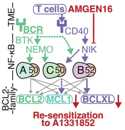 The paper shows that inhibition of NFκB can overcome tumour microenvironment-mediated drug resistance in DLBCL, and re-sensitize lymphoma cells to BH3-mimetics.